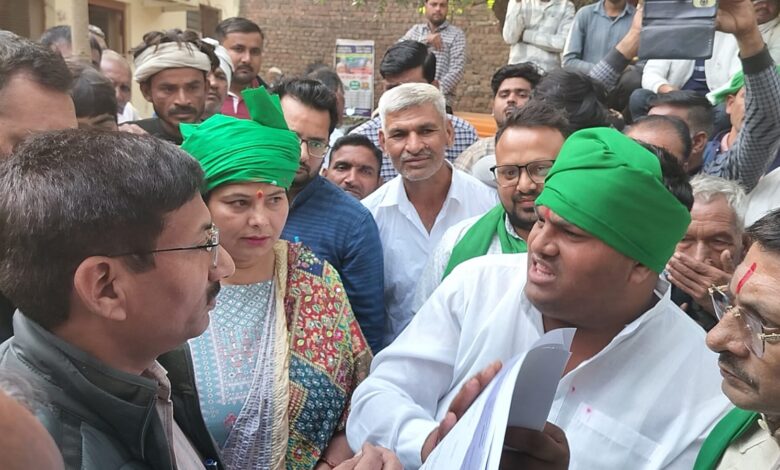 ट्रॉली में आलू भरकर विद्युत कार्यालय पहुंचे किसानों ने किया धरना